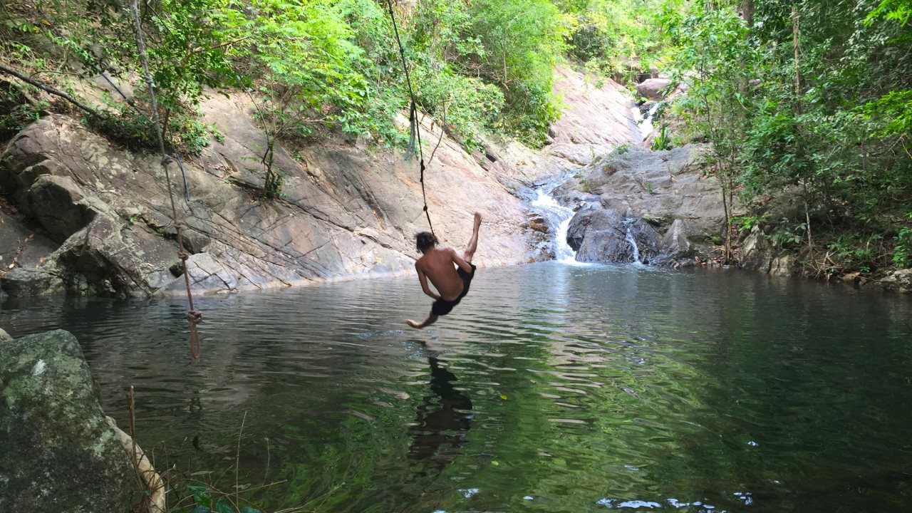 Journée très forte en émotions. Sylvain était complètement dans son élément à grimper dans les arbres pour sauter dans le petit bol d’eau fraîche avec ses copains thaïlandais rencontrés il y a quelques minutes. Aussi, il m’a beaucoup aidé à affronter une de mes plus grandes peurs en nageant avec moi en plein milieu de l’eau où les fonds sont noirs… Très noirs… Et visqueux. Et où les petits poissons te picorent les pieds sauvagement ! 🙁 « Un, deux, un deux… Courage Chloé, tu vas y arriver ! Et voilà, tu es déjà au milieu de l’eau. Tu peux être fière de toi ! » ♥